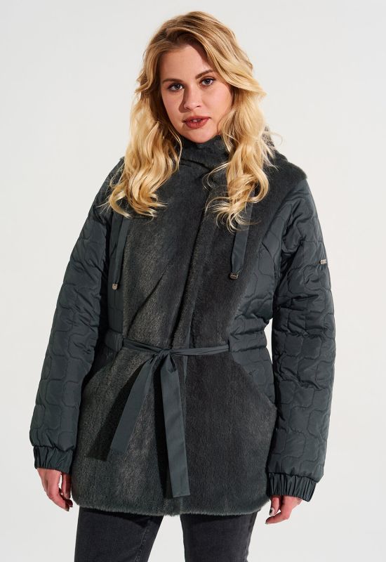 Winter, warm, designer combined jacket from D'imma. Thanks to the latest TherMmax insulation, it is very warm and light. Despite its apparent lightness, it guarantees excellent thermal protection properties up to-20C. The insulation is wear-resistant, perfectly retains its shape and elasticity after washing. Straight silhouette model with loose sleeves. A wide elastic band at the bottom of the sleeve provides additional heat protection. The jacket is fastened with a two-lock zipper with a windproof flap. Hood with drawstring, not detachable. Waist circumference is adjustable with a drawstring. Lining fabric , viscose with polyester, perfectly passes air and water. We use only the best materials and carefully monitor every stage of production. All of our models undergo rigorous quality control to meet the highest standards. colors :beige,blue-green, ivory. Product length: 42 r-r-75cm; 44 r-r-75cm; 46 r-r-75cm; 48 r-r-75cm; 50 r-r-75cm; 52 r-r-80cm; 54 r-r-80cm; 56 r-r-80cm; 58 r-r-80cm; 60 r-r —80cm; 62 r-r — 80cm; 64 r-r-80cm.