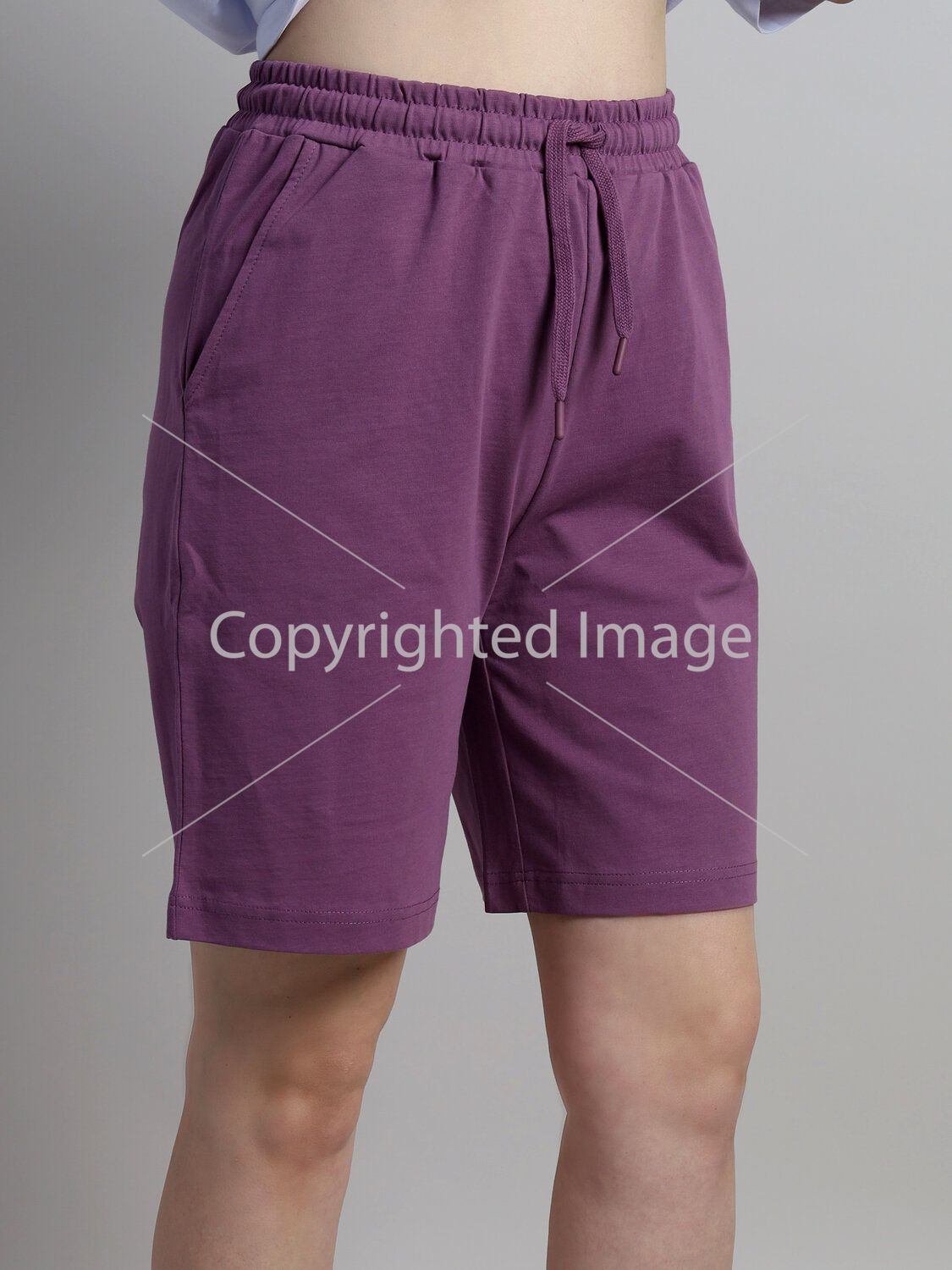 Women's shorts with elastic waistband and functional drawstring. Pockets with cut-off side.